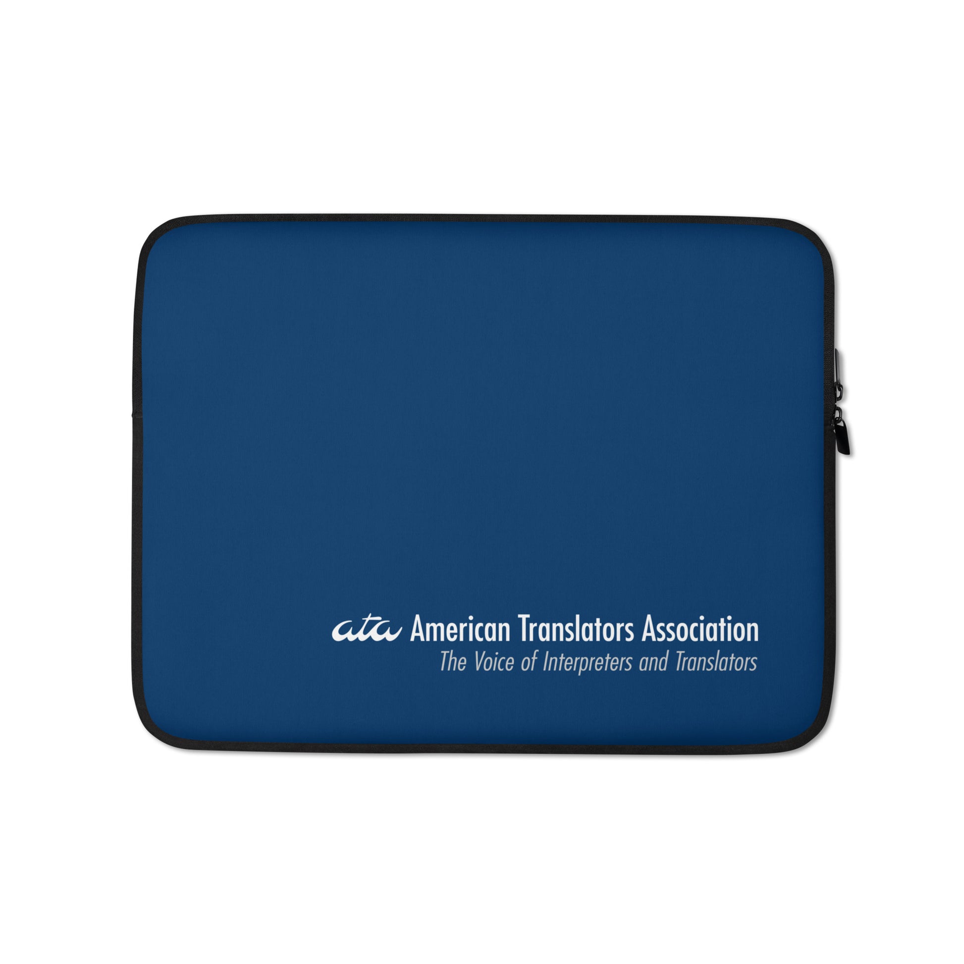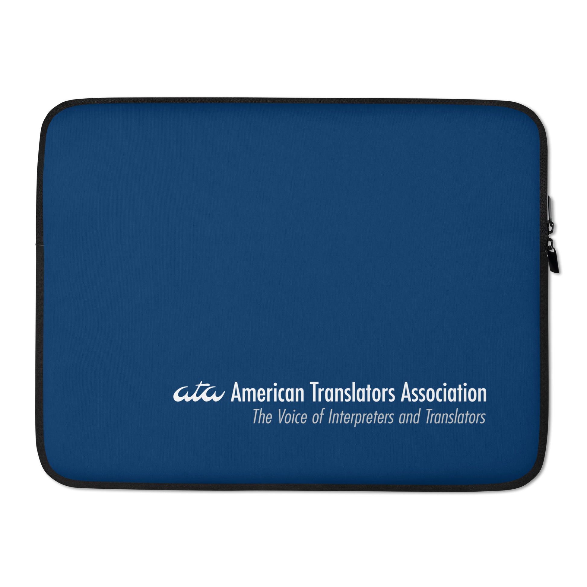 Support the American Translators Association (ATA) with this padded blue laptop sleeve! Its blue color and white ATA logo provide a striking contrast and are perfect for carrying your device to client meetings and conferences.