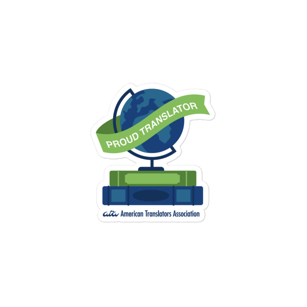 Show that you’re a Proud Translator and support the American Translators Association (ATA) logo with this illustrated sticker! This colorful design is fun and imaginative, capturing translators' passion for bridging gaps of understanding for people around the globe.